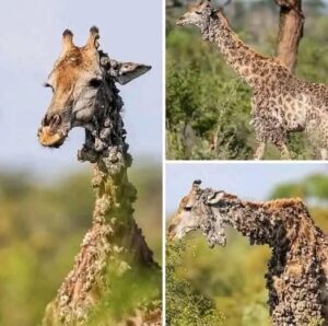 On this trip in December, what began as a routine safari drive quickly transformed into a moment neither Marius nor Michelle would ever forget — and a moment that would soon captivate people worldwide. While searching for lions along the tar road, they found nothing and decided to turn onto a quieter gravel path. It was there that Marius first spotted two giraffes emerging from the dense bush, followed by a third that immediately caught his attention. This particular giraffe was unlike any he had seen before, covered with unusual growths all over her body.