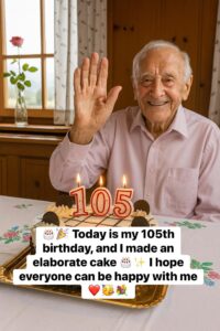 I woke up to silence—no candles, no cards, no calls. I live above an old hardware store in a small room with a bed, a kettle, and a chair by the window. That window is my favorite. I watch buses go by. At the bakery, the girl didn’t recognize me, though I come every week. I told her it was my birthday. She smiled politely. I bought a small vanilla cake with strawberries and had them write “Happy 105, Mr. L.” on it.
