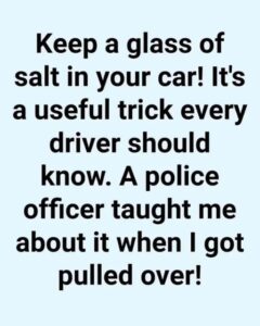 Most people wouldn’t think to keep salt in the car. I didn’t—until a police officer handed me the idea on a frozen morning. My tires had skidded on ice, and while checking on me, he leaned in and said, “Keep a glass of salt in your car. Sounds old-fashioned, but it works.” He explained: when your wheels spin on ice, sprinkle a handful of salt under the tires. It melts just enough for the rubber to grip—like a scaled-down version of road crews salting highways. No tow truck, no trenches.