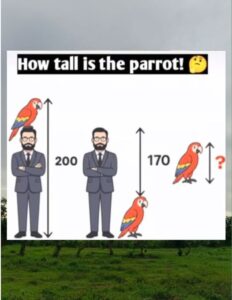 That means the difference (200 − 170) = 30 cm represents twice the height of the parrot — one above the man’s head and one below his feet.