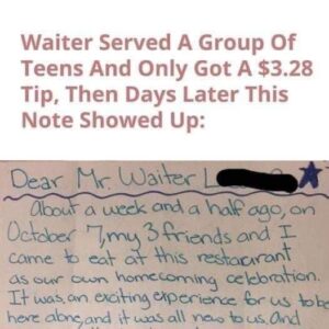 That simple act — a handwritten note and a fair tip — became a viral story about humility, empathy, and second chances. For the server, it wasn’t about the money but about being seen and respected. For the teens, it was a lesson in responsibility. And for everyone who read it, it was a reminder that goodness still exists — that even small gestures can rebuild faith in humanity when the world feels short on kindness.