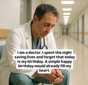 He had spent the night holding the hand of a dying patient, comforting a scared child, and fighting to save a life that slipped away just before sunrise. There was no cake, no candles, no family waiting at home—just the sterile scent of disinfectant and the quiet hum of hospital lights.