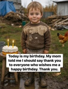When he stepped outside, he saw it — a small cake made by his mother’s trembling hands. Two candles stood crookedly on top, their tiny flames fighting the cold morning wind.