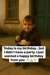 He sat on the front step of his old apartment building, holding a small slice of cake on a yellow plate — a cake his mother had bought with the last few dollars she had after paying rent. She had apologized three times that morning, telling him she couldn’t afford a party this year, and that all his classmates were too far away to visit anyway.