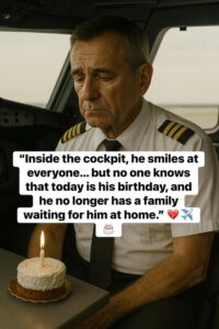 Today, as he sat in the cockpit, the soft hum of the engines filling the silence, a small cake with a single candle rested on the tiny metal table beside him. It wasn’t much. It wasn’t what he used to have. But it was all he had left.