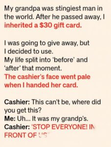 I stood there stunned as the store manager came over to confirm what I already knew to be true. My grandpa’s “stingy” gift turned into a fortune that changed my whole life and my future in an instant.