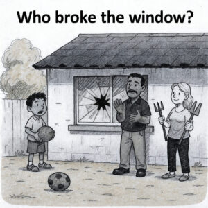 It looks like the boy with the ball most likely broke the window.
