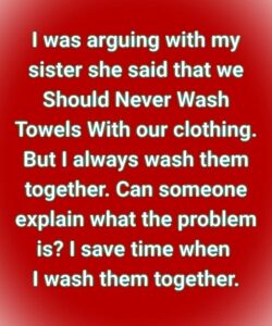 I was arguing with my sister because she insisted we should never wash towels with clothing. I always wash everything together to save time, so I told her she was overthinking it. Sylvie just folded her arms and said, “You’re ruining your clothes. Towels are heavy, rough, and full of lint.” I brushed it off—until things started happening. First, my navy blouse came out of the wash covered in tiny white fuzzies.