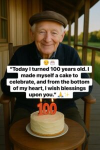 On a quiet wooden porch at the edge of a forgotten countryside, an elderly man sat alone before a small birthday cake. The number 100 flickered proudly on top, glowing in the same soft warmth that once lived inside his heart. His hands trembled slightly—not from fear, but from memory. A full century of life now rested behind him, and yet… no voices filled the air. No footsteps approached. No arms wrapped around him to say “Happy Birthday, Grandpa.”