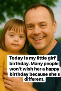 The stares, the whispers, the awkward smiles, and the comments disguised as concern—every one of them cut deeper than anyone knew. He saw how children were pulled away from her at playgrounds, how parents hesitated, how invitations never came, how her little world stayed small not because she deserved it, but because others couldn’t look past what made her unique. And yet, she remained a gentle sunbeam—quiet, sweet, innocent, carrying a softness the world desperately needed but rarely appreciated. Today was her birthday, a day any child should feel celebrated, loved, and special. But he already knew how it would go. He had seen it last year, and the year before that. People would scroll past the post. Some would look without liking. Others would hesitate out of discomfort, uncertainty, or silent prejudice. He hated that he even had to think about such things on her birthday, but he was a father—her father—and he felt every wound the world gave her as if it were his own. This morning, she woke up with the brightest smile, her hair messy, her little hands reaching out for him. “Daddy, is today my happy day?” she asked softly. His heart broke and healed all at once. “Yes, sweetheart,” he whispered, hugging her tightly, “today is your happy day.” He spent the morning making her favorite breakfast, decorating the house with balloons, placing a little crown on her head as she giggled in her quiet, precious way. He tried to give her everything she deserved—but deep down, he wished the world would do the same. He wished she could receive the same love every other child receives without effort. He wished people would see what he sees every single day: a miracle, a warrior, a blessing. So he posted her picture, not for attention, but because he wanted her to feel seen. He wanted, just once, for kindness to win. He wanted strangers to show her the compassion she rarely receives. Not because she is different, but because she is human—because she loves, and smiles, and tries, and exists with a purity the world desperately needs. Today is her birthday. And he hopes—quietly, painfully—that somewhere out there, someone will take a moment, even a small one, to make his little girl feel celebrated. Because to him, she is everything. She is the reason he wakes up, the reason he fights, the reason he believes that life, even in its hardships, is still beautiful. And all he wants is for the world to give her the tiny bit of love she gives so freely every day. Just one wish. One moment of kindness. One happy birthday for a little girl who deserves the world.