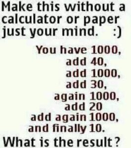 Do the following math without a calculator or paper. Just your mind!