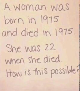 A viral brain teaser has captured the attention of thousands online, leaving many scratching their heads in confusion. The image, which states, “A woman was born in 1975 and died in 1975. She was 22 when she died. How is this possible?” has sparked intense debate and curiosity across social media platforms