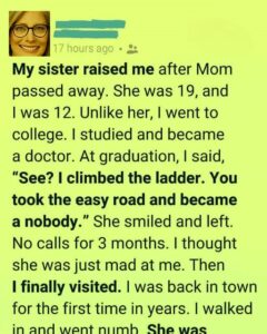 We are often taught that greatness is measured by degrees, titles, and prestigious achievements. Society points us toward corner offices and academic honors as proof of success. But my understanding of true greatness was shaped not in a classroom or boardroom, but inside a small two-bedroom apartment—by my sister, who had no degree, yet carried an extraordinary capacity for sacrifice. I was twelve when our mother passed away, a moment that abruptly ended my childhood. The hospital corridors, the silence, the uncertainty of what came next—all of it felt overwhelming.